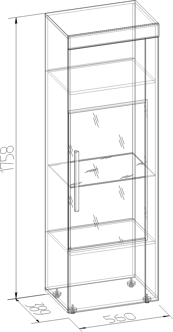 Шкаф со стеклянной дверцей и стеклянными полками станет отличной витриной для дорогих и любимых фотографий и памятных вещиц. Стеклополки в обработке еврокромкой выдерживают до 10 кг каждая. Их можно декоративно подсветить с помощью светодиодной подсветки (в комплекте не поставляется, приобретается отдельно). Фасад перенавешивается на левую и правую сторону. Серебристая стильная ручка из массива дерева и серое тонирование стекло фасада вносят смелые дизайнерские штрихи в восприятии актуального декора "под бетон".
