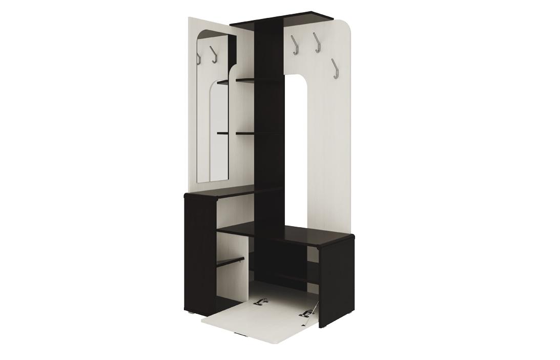 Прихожая «Антре» – компактная и достаточно вместительная прихожая с оригинальным угловым дизайном. В конструкции предусмотрено всё необходимое для хранения верхней одежды, обуви, аксессуаров.