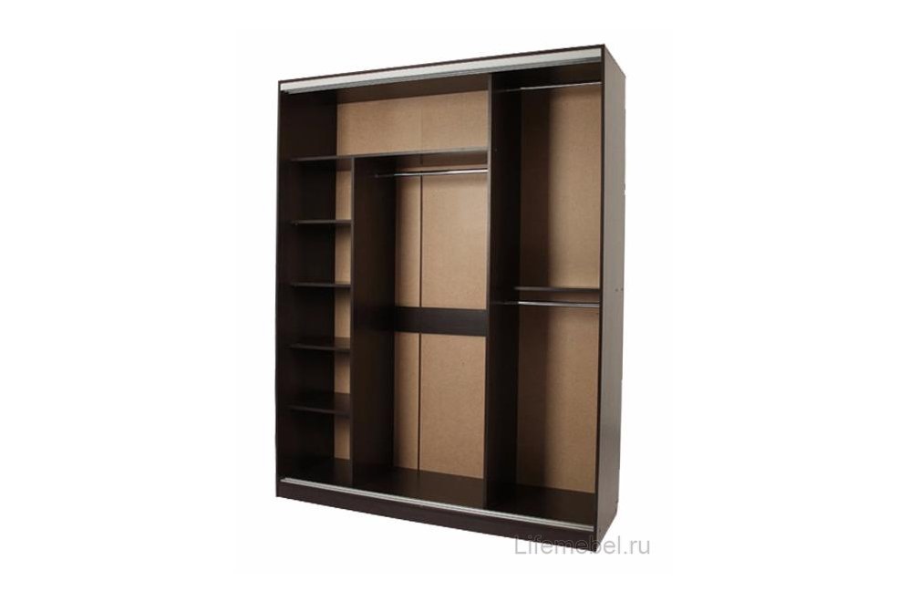 Шкаф-купе «Бассо» создан для Вашего гардероба. В 3-х отделениях Вы сможете разместить рубашки, юбки и брюки, в отделение с полками – сложить вещи и белье.