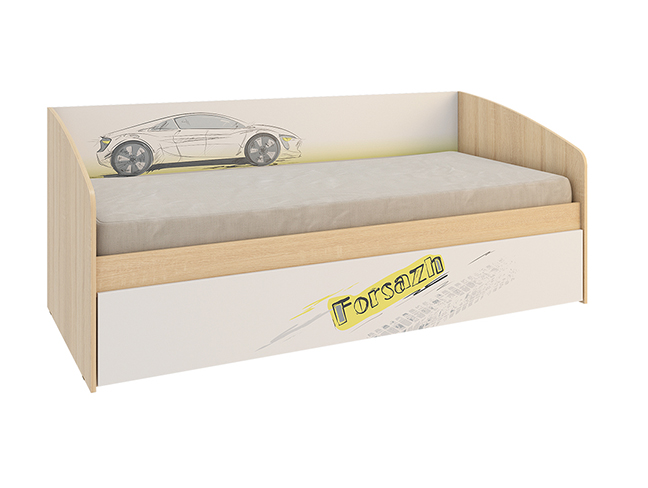 Стильный принтерный рисунок на фасаде. Детская «Форсаж» - это стильная, современная детская, которая понравится каждому ребенку. Рисунок устойчив к истиранию и ультрафиолету. Дополнительное удобное спальное место или большой выдвижной ящик для хранения постельного белья и игрушек, на выбор, решать вам.