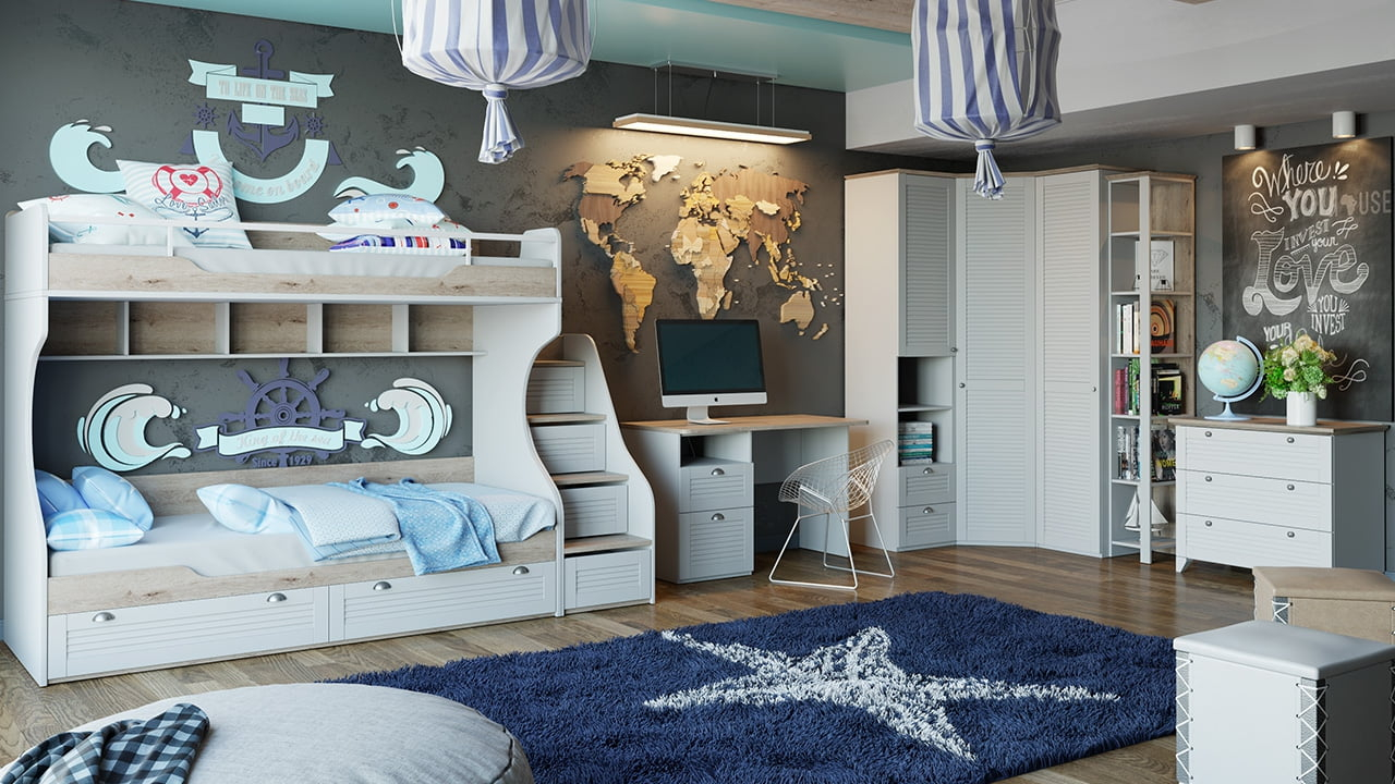 Ривьера СМ 241.11.12 Кровать двухъярусная с приставной лестницей
