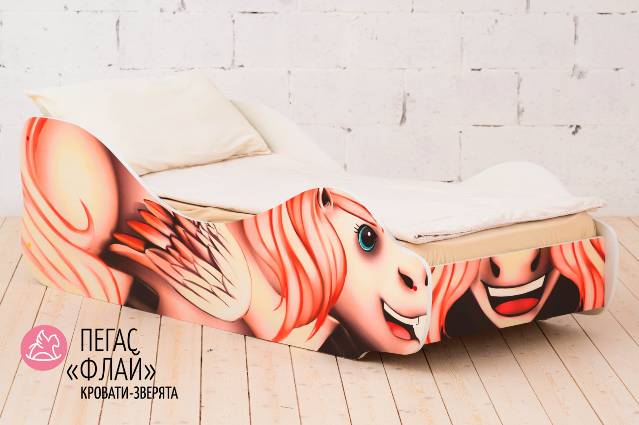Пегас-Флай – это замечательная и комфортная кровать для девочек от 2-х лет. Крылатый конь в греческой мифологии – это символ добра и вдохновения. А такое очаровательное его изображение не оставит равнодушным ни одно детское сердце. Данная модель не только будет выполнять функции удобного спального места, но и станет любимой игрушкой для вашего ребенка.