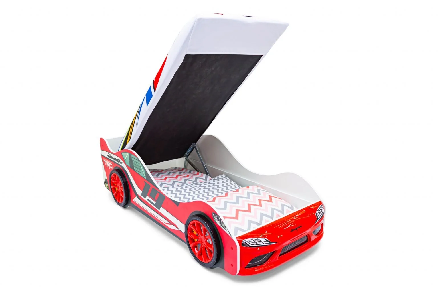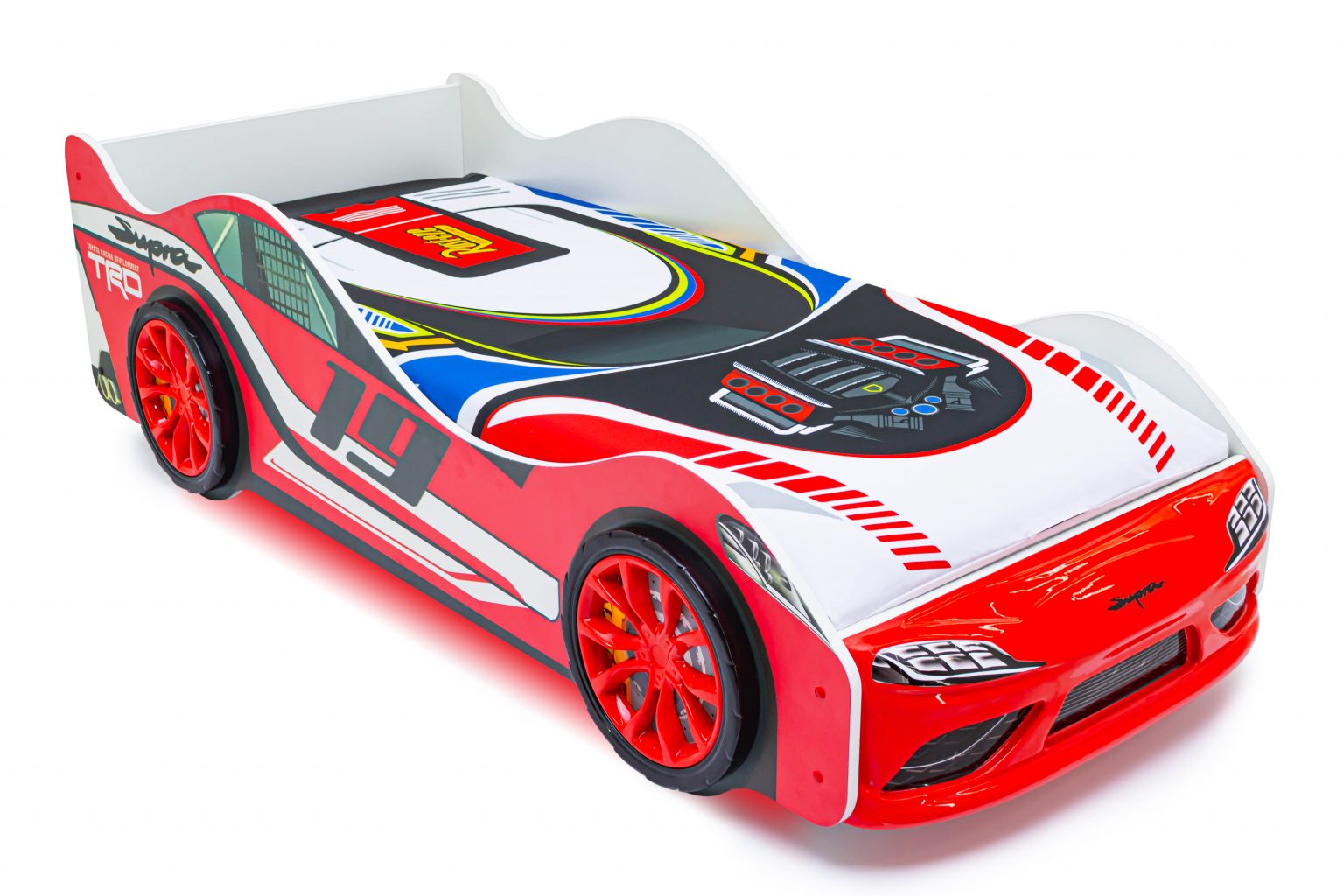 Детская кровать-машина “Супра” красная станет любимым местом для сна и игр мальчика или девочки от 2 до 10-12 лет.
