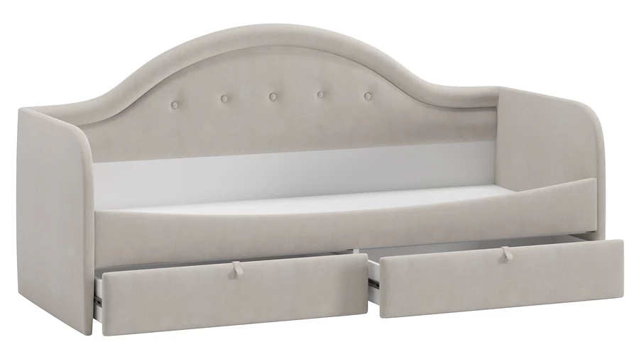 Благодаря своей конструкции, отлично разместится вдоль стены, экономя пространство. Днем это замечательный диванчик, а ночью – спальное место.ьКровать имеет мягкую обивку не только спинки, но и остальных внешних деталей. В детской спальне или малогабаритной квартире столкновения с мебелью просто неизбежны. Мягкая обивка кровати смягчит такие моменты и уменьшит травмоопасность.