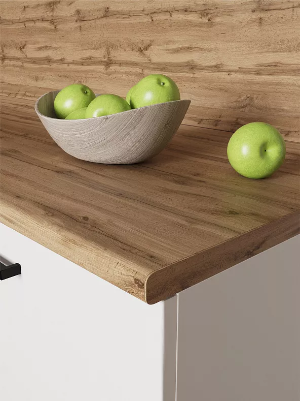 Столешницы цельные с пластиковым покрытием со скруглением по переднему краю (постформинг толщина 26 мм).