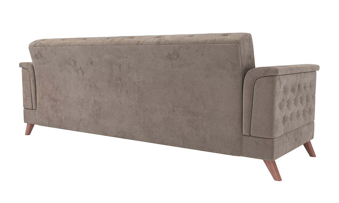 Спальное место 1930х1200 вполне комфортно для отдыха. Каркас дивана выполнены из ЛДСП и бруса хвойных пород. Опора производства Турции, отлитая из первичного пластика, удерживает вес до 230 кг при распределенной нагрузке, что располагает к комфортному размещению на диване. Задняя часть дивана обита тканью в цвет модели, внутренние части модулей обиты технической тканью.