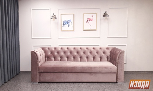 Шикарный велюр, нежный и современный цвет, безупречная каретная стяжка, отделка декоративным гвоздиком, возможность превращаться в удобную просторную кровать - это мечта, а не диван!