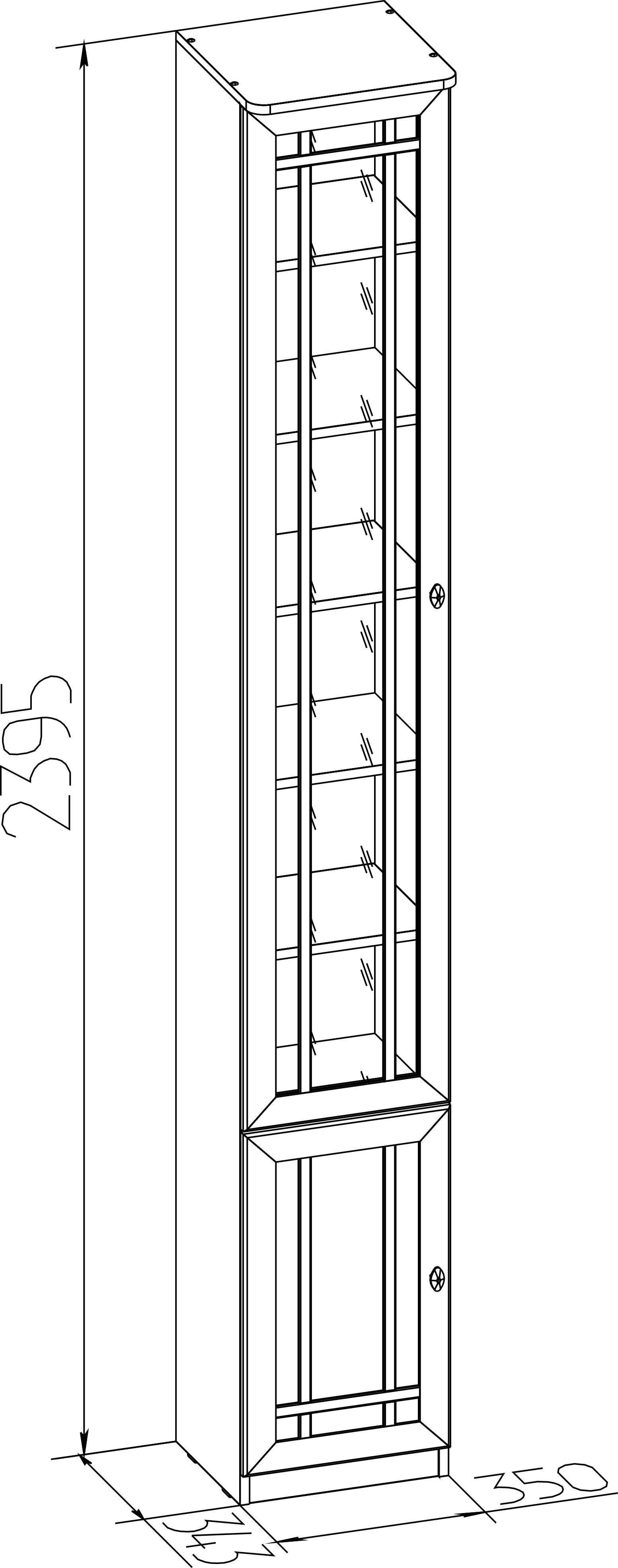 Высокий книжный шкаф можно установить в комнату с высотой потолка не менее 240 см. Высота полок во всех шкафах для книг регулируется, для этого только необходимо установить полкодержатели в подготовленные отверстия. Это позволит поставить на полки книги и альбомы разного формата. Тонированное стекло защищает книги от вредного воздействия солнечных лучей и убережет их от пожелтения. Книжный шкаф обязательно крепится к стене за подвесы и межсекционной стяжкой с другими шкафами в наборе. Библиотека выпускается без выборки под плинтус, чтобы каждый мог прирезать плинтус индивидуально. В противном случае остаются неаккуратные зазоры между модулем и стеной.