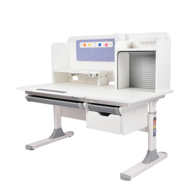 Столешница парты Camellia разделенная на две зоны рабочую (наклонную) и статичную, позволяет максимально эффективно использовать пространство во время учебы и развития вашего ребенка.Под столешницей располагаются три выдвижных ящика, два из которых имеют разделение на секции для более комфортного хранения вещей. Особенностью данной модели является надстройка со встроенной, выдвижной подставкой для книги, доска для заметок ,а также вместительная полка с роллетной дверцей.
