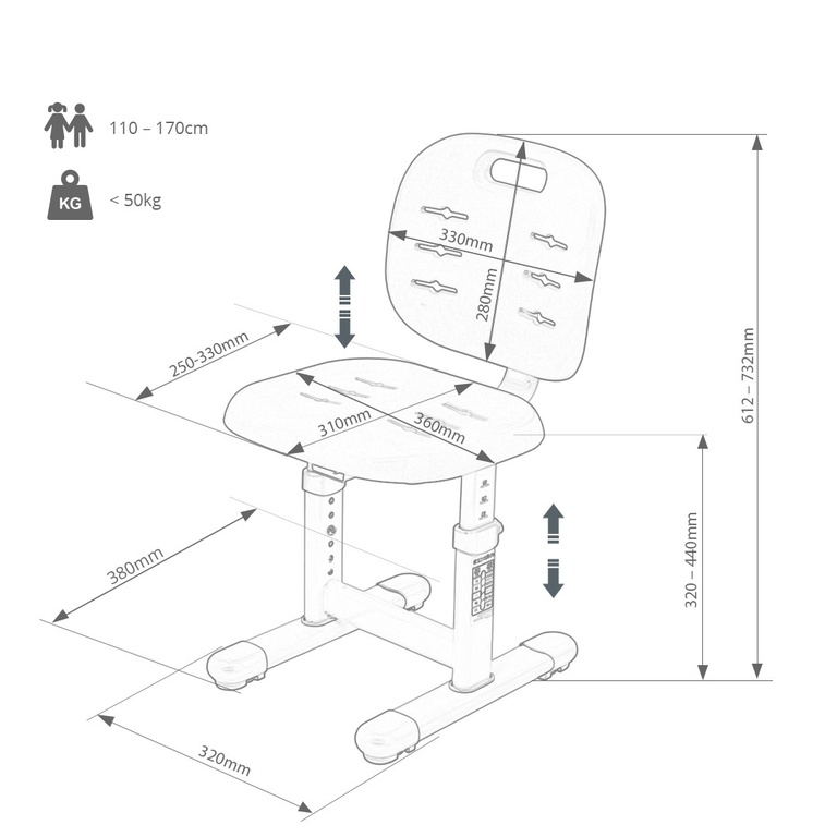 SST2 (жесткая -фиксация) -удобный и современный стул-трансформер. Используя специальную шкалу с указанием роста ребёнка, вы легко и быстро сможете привести стульчик в необходимое положение для ребёнка от 2 до 6 лет.