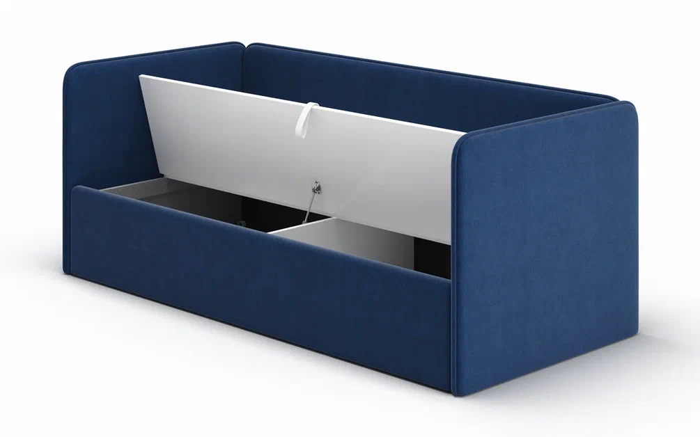 Вместительный ящик-книжка позволит хранить не только постельное бельё, но и игрушки. Дно ящика выполнено из ЛХДФ, борта - ДСП, обшитые файбертексом, разделитель – ЛДСП.