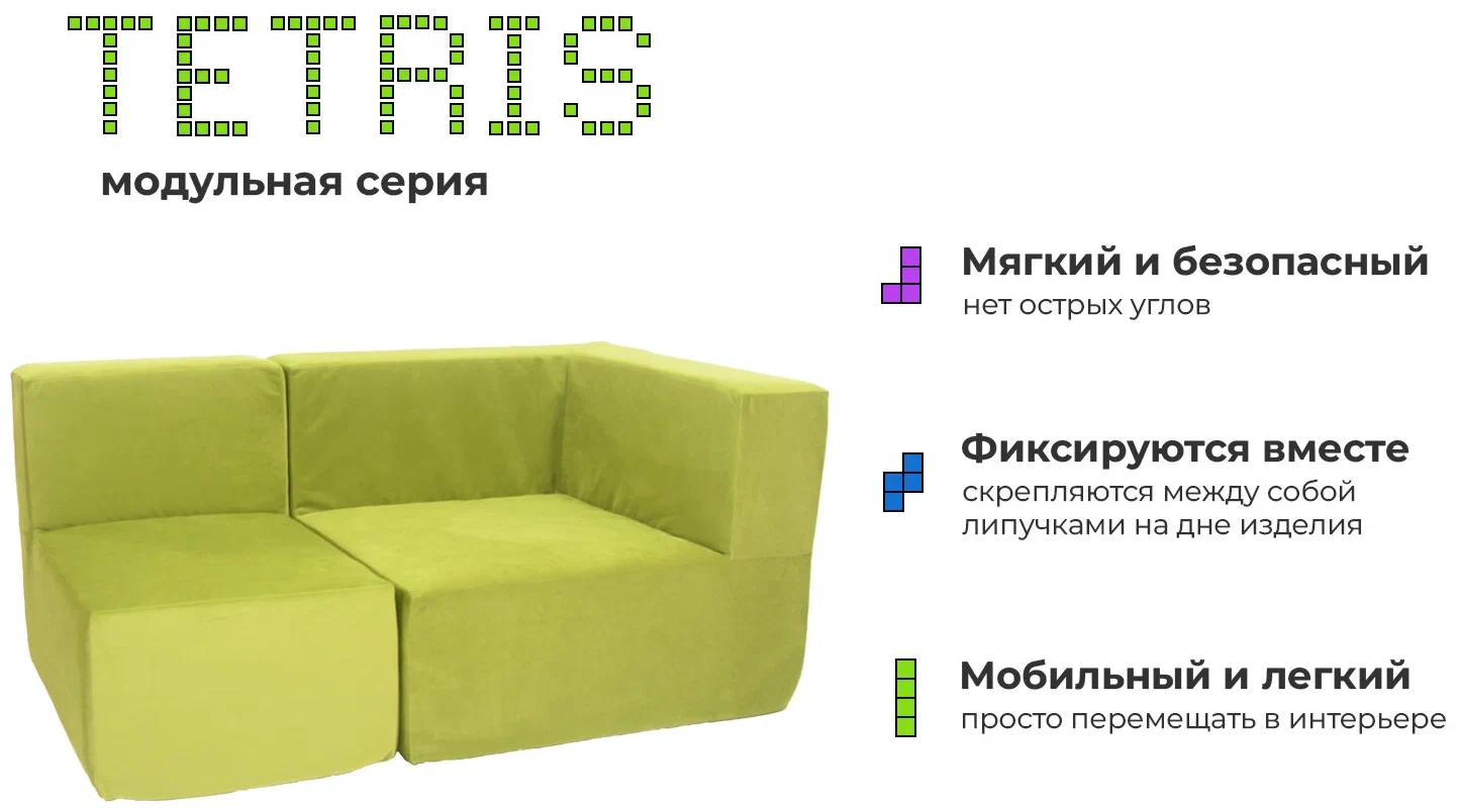Серия ТЕТРИС состоит из четырех типовых модулей: диван, кресло, угол, пуфик.