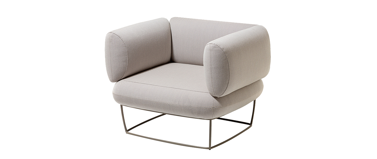 Мягкое кресло Деми от российской мебельной фабрики Gartlex, стоит на необычных металлических опорах.