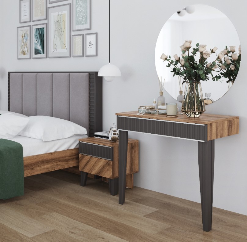 Эксклюзивная коллекция для спальни «Моника» выполнена в цвете Авелано с тиснением Эдель Вуд, имеющим эффект натурального дерева. МДФ Графит с матовой приятной текстурой создает уют в вашей спальне. Вы сможете подобрать наполнение шкафов, улучшая функционал мебели, а также создать уникальную комбинацию фасадов, изменив внешний вид. Модульная серия «Моника» имеет множество преимуществ: