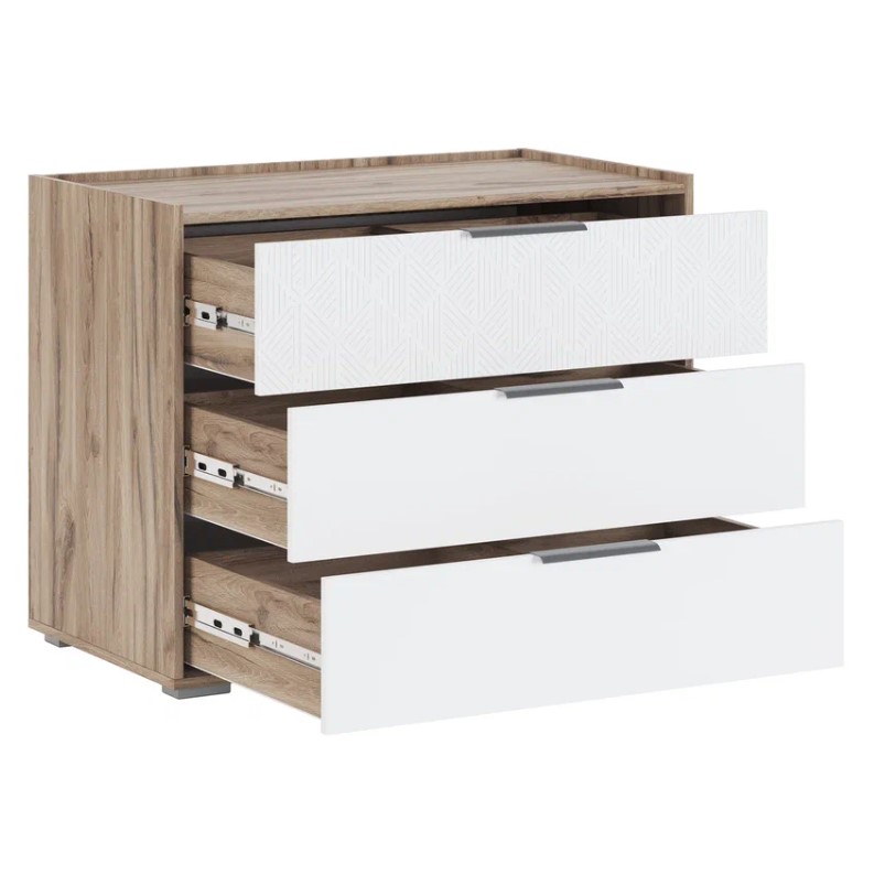Комод имеет три выдвижных ящика на шариковых направляющих полного выдвижения;