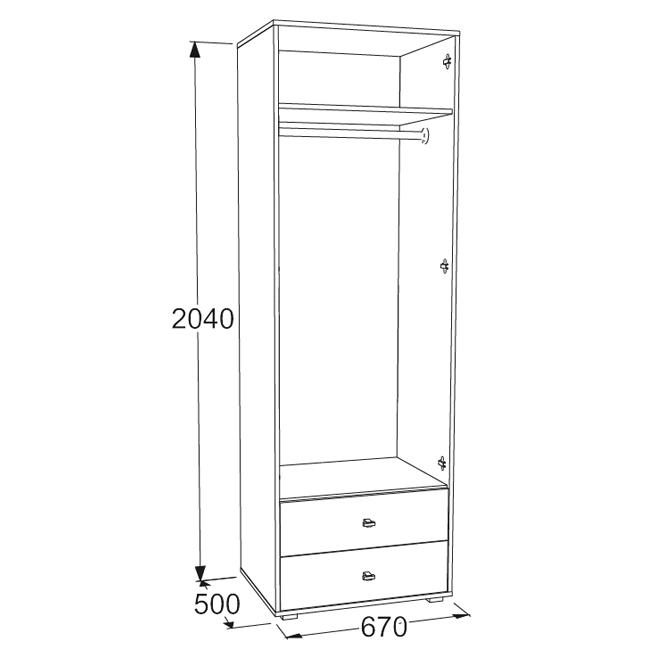 Шкаф для одежды Омега 18 с двумя выдвижными ящиками и двумя распашными дверцами.