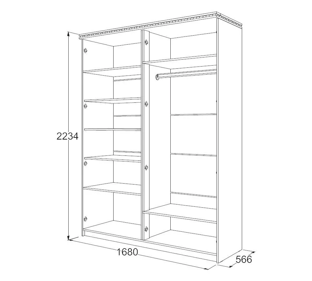 Размер: (Ш*В*Г) 1680*2234*566 мм.