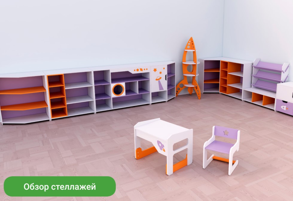 Функциональный стеллаж из новой коллекции «Космос» подходит для использования в группе, холле, методкабинете или кабинете заведующей. Восемь секций разных форм и размеров идеально подходят для хранения игрушек, книг и учебных пособий, помогая приучить детей к порядку и дисциплине.