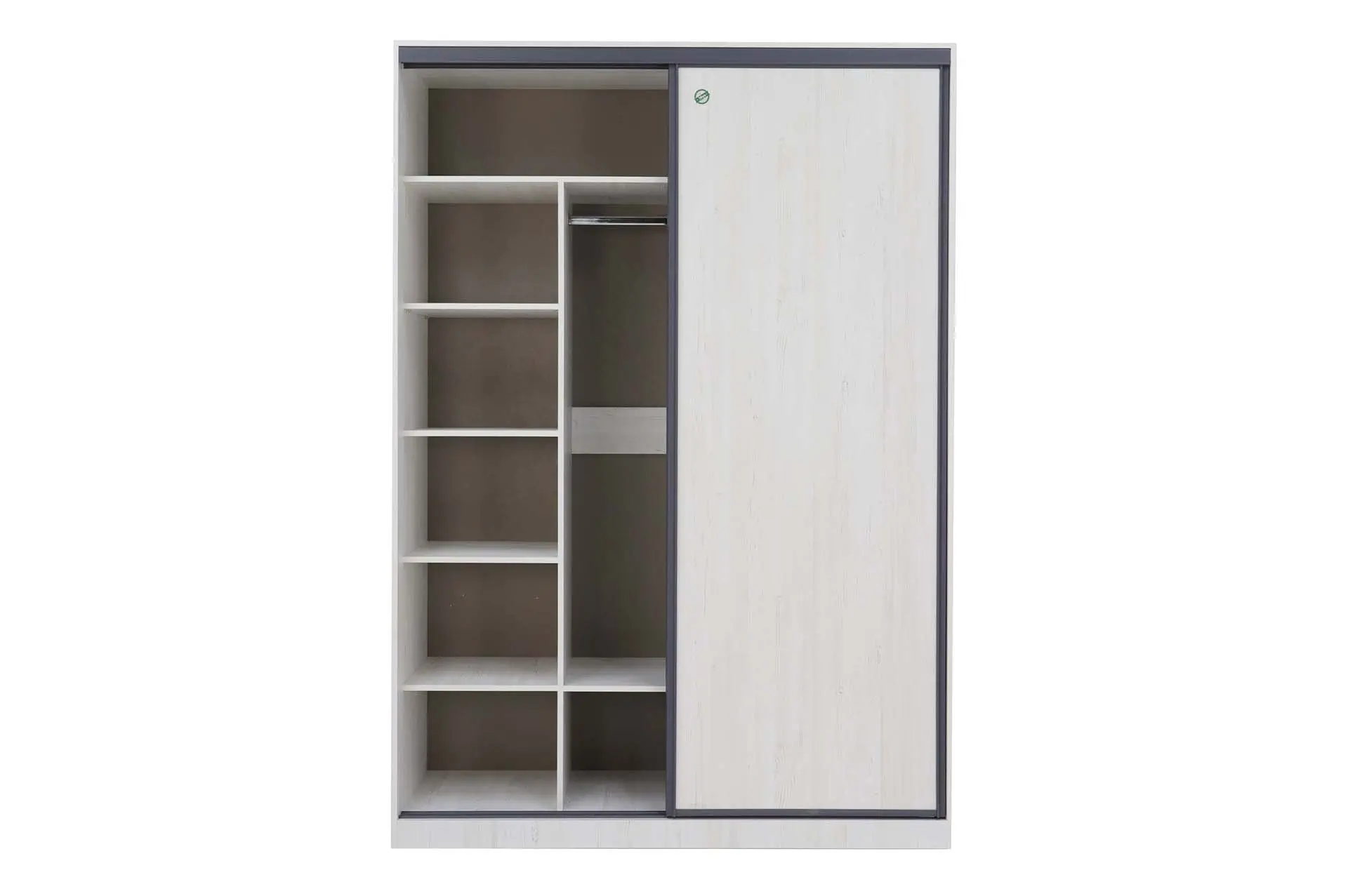 Практичный в использовании шкаф отлично подойдет для спальни. ЛДСП с текстурой дерева будет актуально еще долги годы, а светлый цвет освежит комнату.