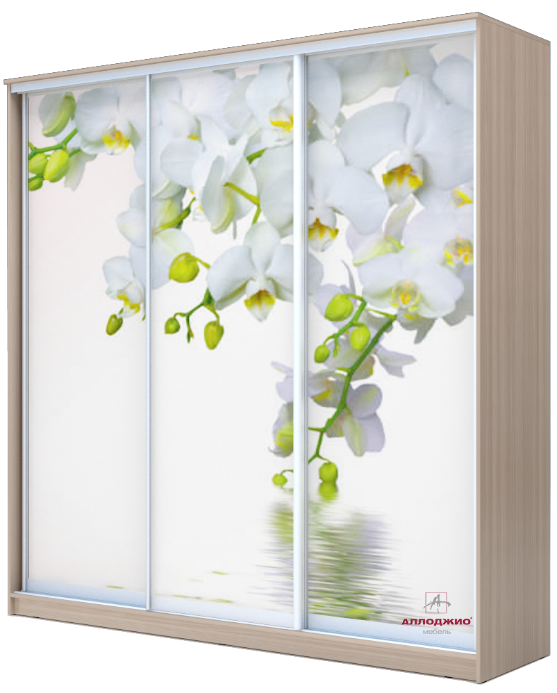 Шкаф оснащен тремя дверями-купе с наполнением из стекла 4 мм с полноцветной печатью.