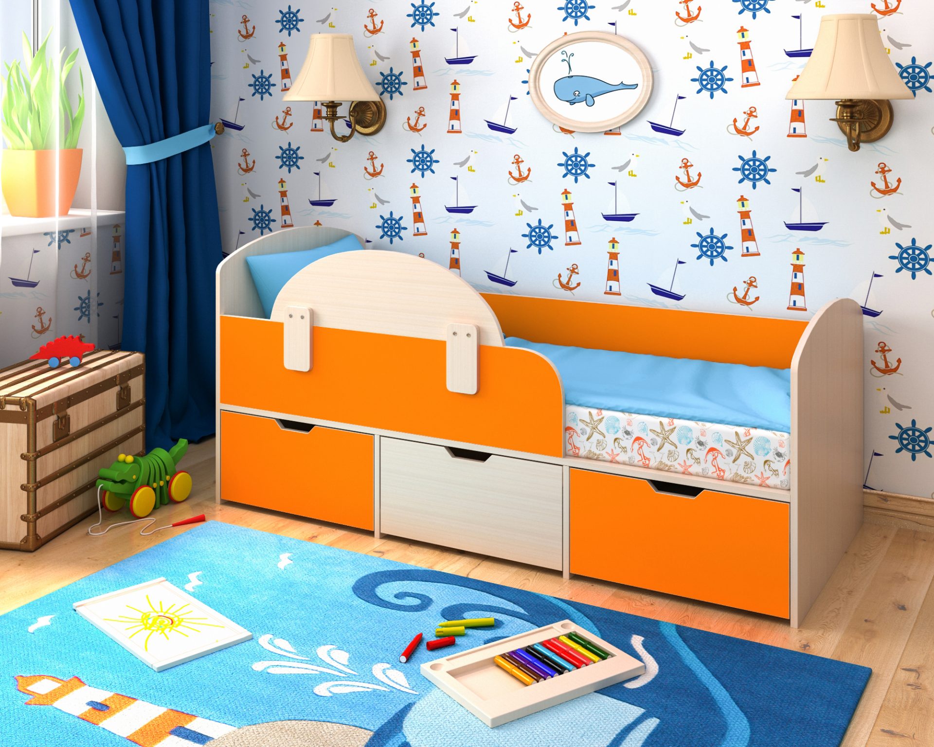 Детские кровати от производителя – это гарантия качества, надежности и безопасности, а также большого выбора моделей для детей разного возраста. Детская кровать «Малыш» с ящиками в Москве станет удачным выбором для обустройства комнаты маленького ребенка: у нее безопасная высота, на которой малышу будет не страшно. Есть ограждающие бортики для гарантии безопасного сна, а значит, даже если ребенок будет сильно вертеться во сне, он не упадет.