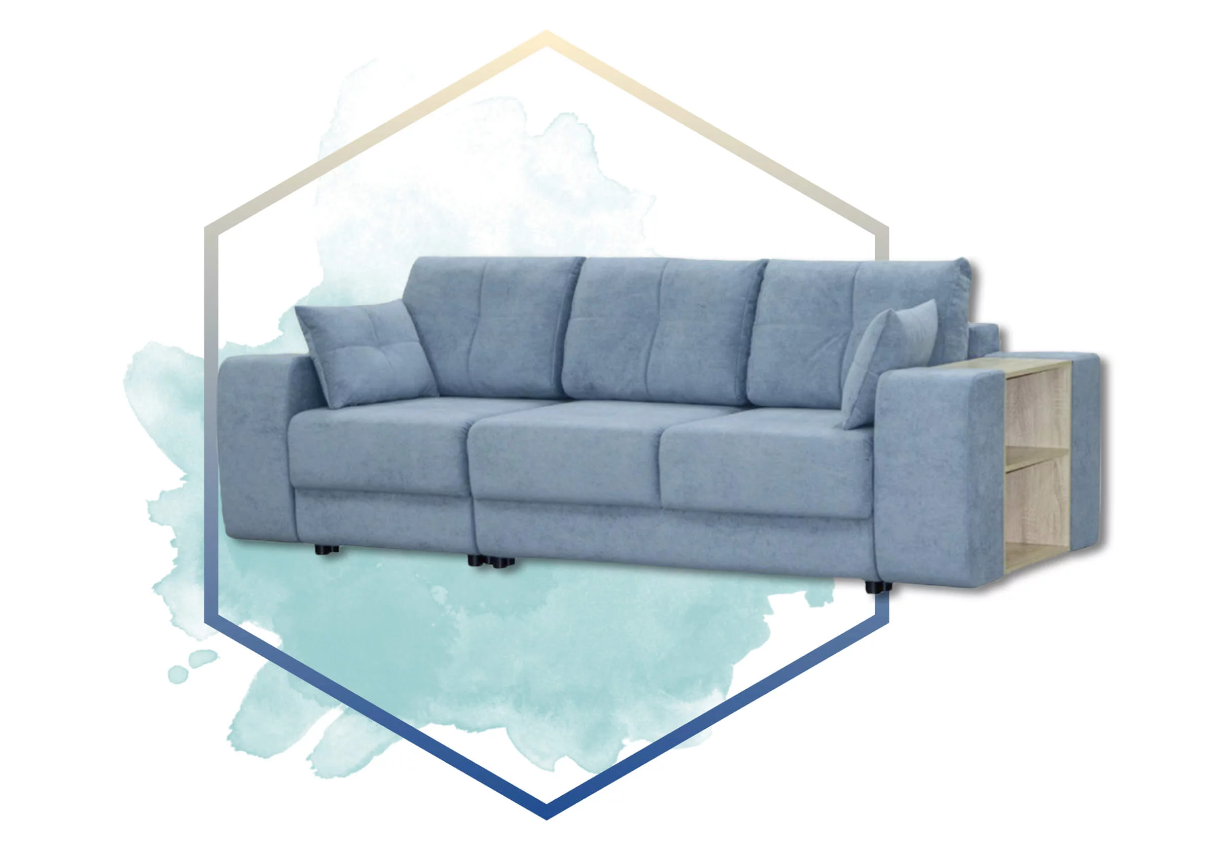 Может использоваться, как центральный объект интерьера. Превращается из прямого дивана в угловой.