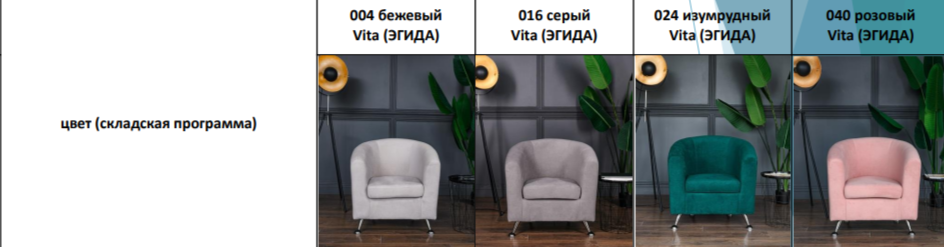 Складские цвета: 004 бежевый Vita, 016 серый Vita, 024 изумрудный Vita, 040 розовый Vita (Эгида)