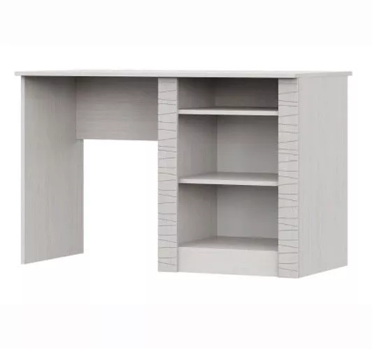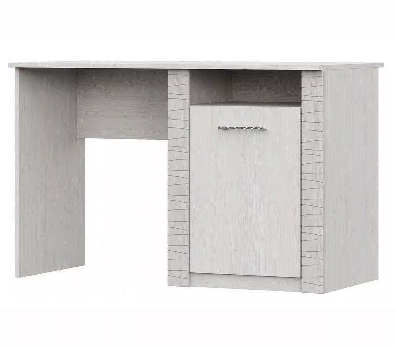Вместительный письменный стол позволит с комфортом расположиться для работы. После того как работа завершена, легко поддерживать порядок, убрав все бумаги и принадлежности в тумбу с полками и открытой нишей.