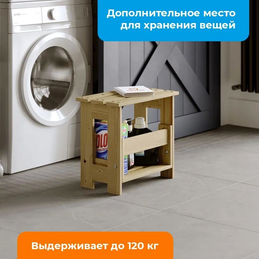Табурет-стремянка с выдвижной ступенькой – крепкий и надежный помощник как для взрослого, так и для ребенка. ❖С помощью него Вы сможете легко вымыть окна или дотянуться до верхних полок шкафа во время уборки от пыли. Как садовый табурет-лестница он тоже найдет своё применение. ❖А для Вашего ребенка этот складной деревянный табуретка послужит устойчивой детской подставкой к раковине или мойке. Все поверхности тщательно отшлифованы. ❖ Изготовленный в эко-стиле, он отлично впишется в интерьер вашей кухни, ванной комнаты, дачи, офиса, мастерской или комнаты в лофт стиле. В гостиной он может также послужить как кашпо для цветов или журнальный столик. ❖Кроме того, в сложенном виде его можно использовать, как дополнительное место для хранения, например, бытовой химии или других предметов быта. Подарите вашей семье удобство и функциональность с этим маленьким, но крепким табуретом-трансформером.
