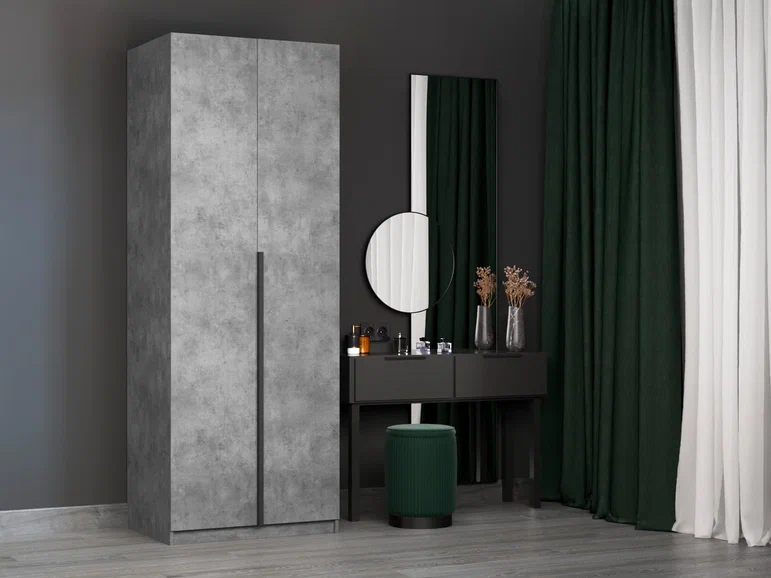 Шкаф оснащен удобной минималистичной ручкой, изготовленной из алюминия.