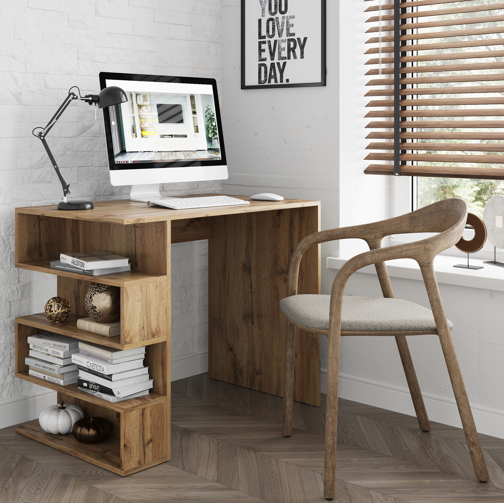 Письменный стол Штерн — это комбинация удобной рабочей поверхности и оригинальной системы хранения в виде встроенного стеллажа. Благодаря оптимальным габаритам модель подойдет как для отдельного кабинета, так и для небольшой рабочей зоны в гостиной, спальне или подростковой комнате.