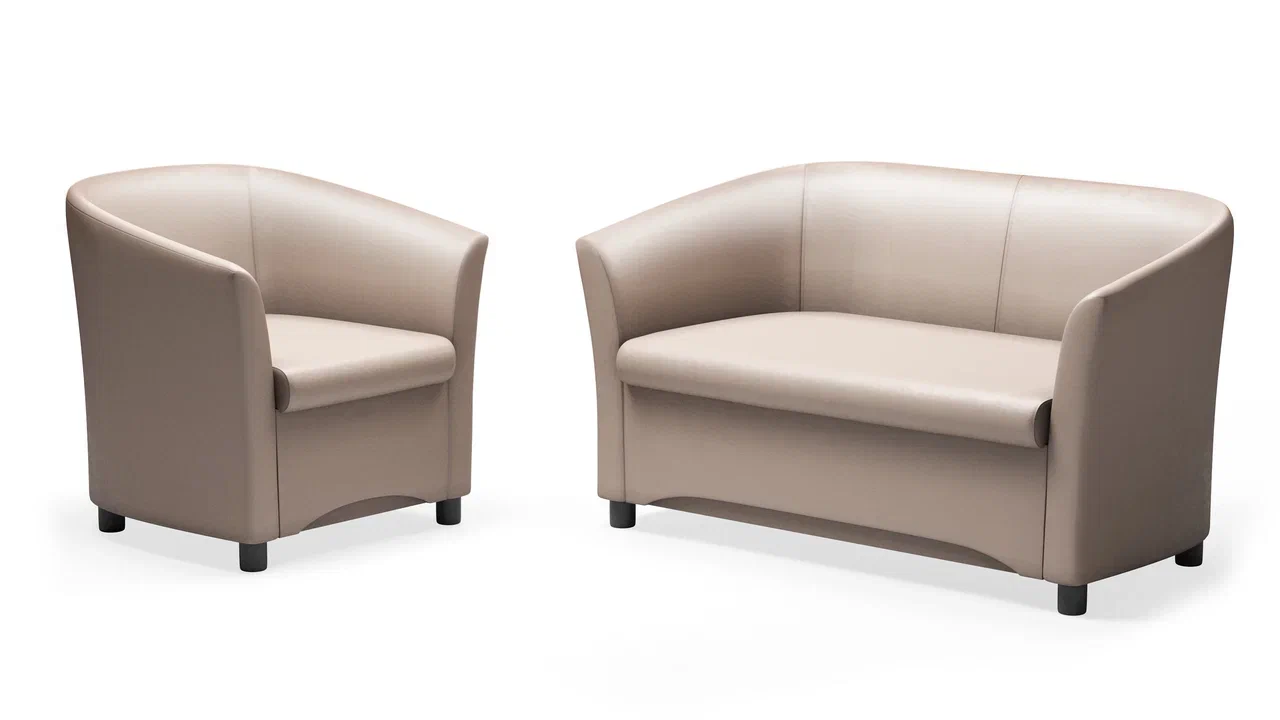 Офисные диваны и кресла "Камю" изготавливаются из высококачественных пород древисины. Для обивки на свой вкус Вы можете выбрать экокожу или ткань различных расцветок и текстур. Опоры выполняются из пластика 50мм