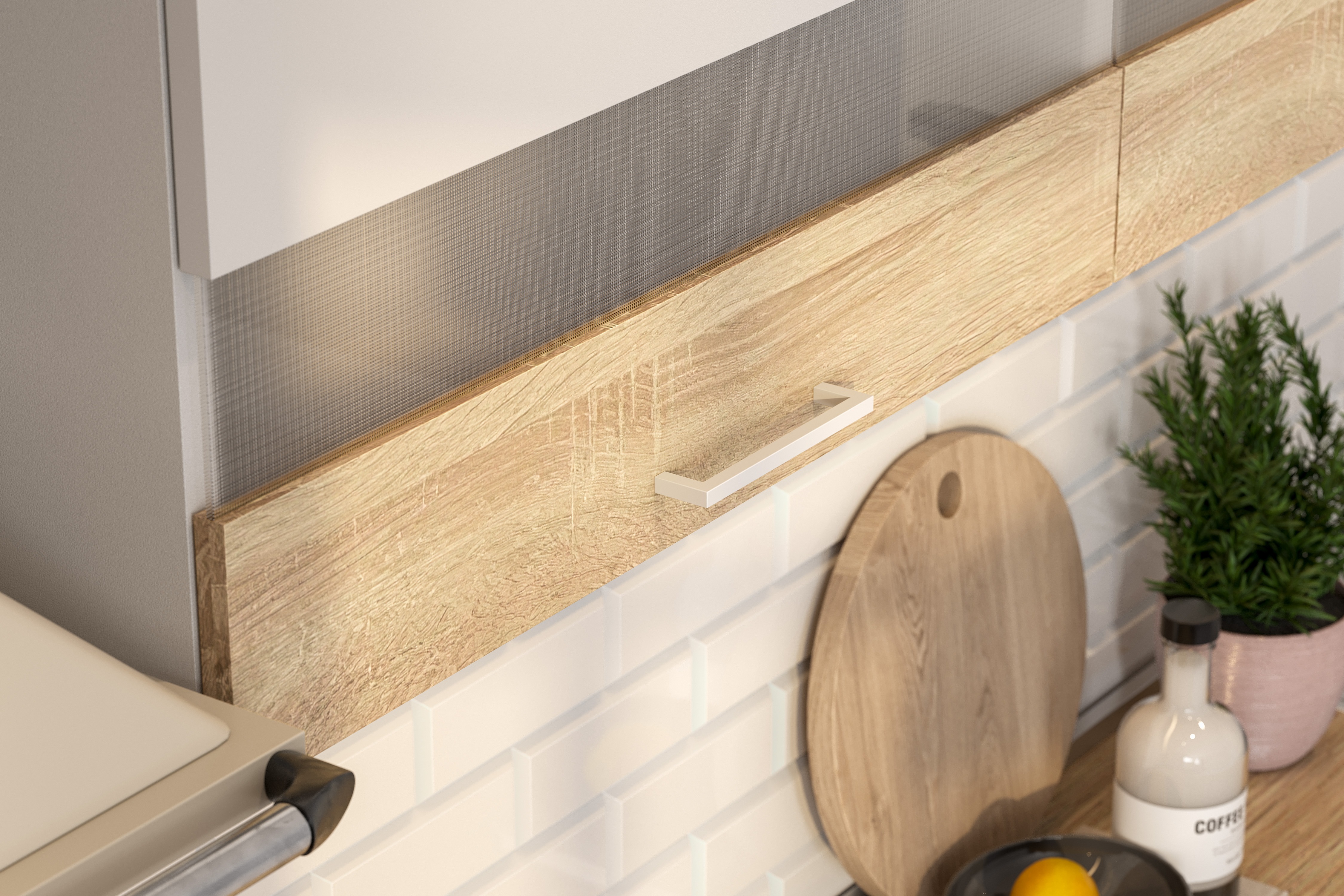 Кухонный гарнитур "Ультра" - трендовое решение для кухни в скандинавском стиле. Простота форм и чистый светлый декор с древесными нотками и матовым стеклом - главные отличия сканди-направления, благодаря которым мебель в данном стиле пользуется популярностью у покупателей. В кухонном гарнитуре Ультра предусмотрены вместительные нижние модули для хранения с выкатными ящиками и распашными дверцами. Модуль под накладную мойку удобен за счет оптимальной ширины в 60 см, позволяющей мыть посуду без стеснения движений. Верхние модули со створками на газлифтах позволяют организовать грамотное хранение продуктов, кухонных принадлежностей и посуды. Модель выполнена из надежных экологически-чистых материалов природного происхождения. В производстве используется ЛДСП европейского качества, которая не подвержена сколам, легко переносит повторные сборки и служит не один год даже при интенсивной эксплуатации. В кухонный комплект входит столешница в декоре "тростник", изготовленная из ДСП и покрытая слоистым пластиком. Кромка из первичного АБС пластика 0,4 мм по боковым и задним торцам предотвращает возможность разбухания и появления плесени в агрессивной влажной среде.