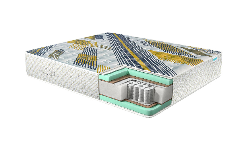 Состав: блок независимых пружин 140/256 пружин на м.кв, лён 5мм, пена Bio Bubblе 40мм, терморегулируюший слой EcoCotton.