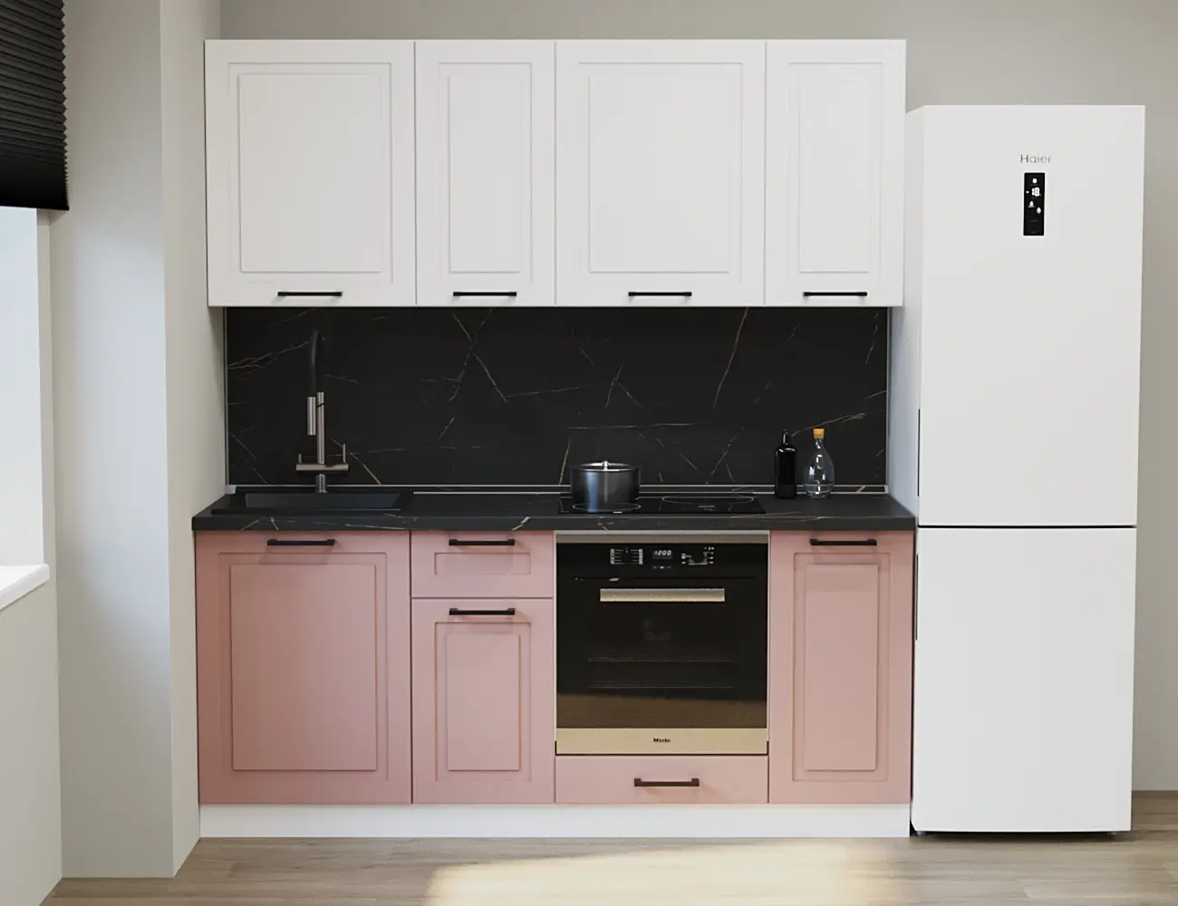 Аликанте 17: Цвет фасада: Шарли Pink, Шарли белый, корпус Серый, столешница 28мм: Каспий черное золото