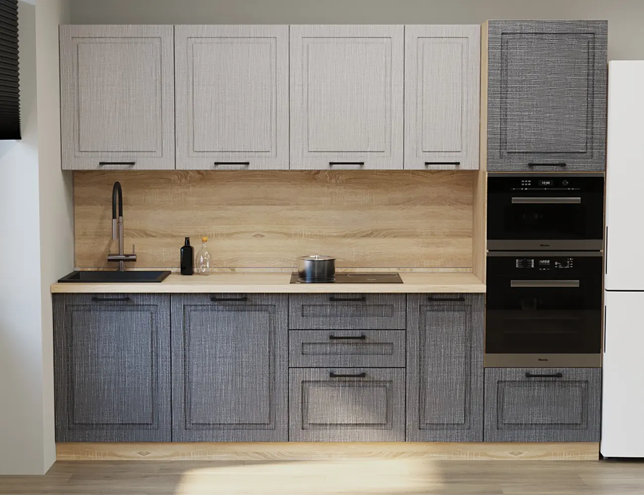 Аликанте 32: Цвет фасада: Чесура светлая, Чесура темная, корпус Дуб сонома, столешница 28мм Дуб сонома