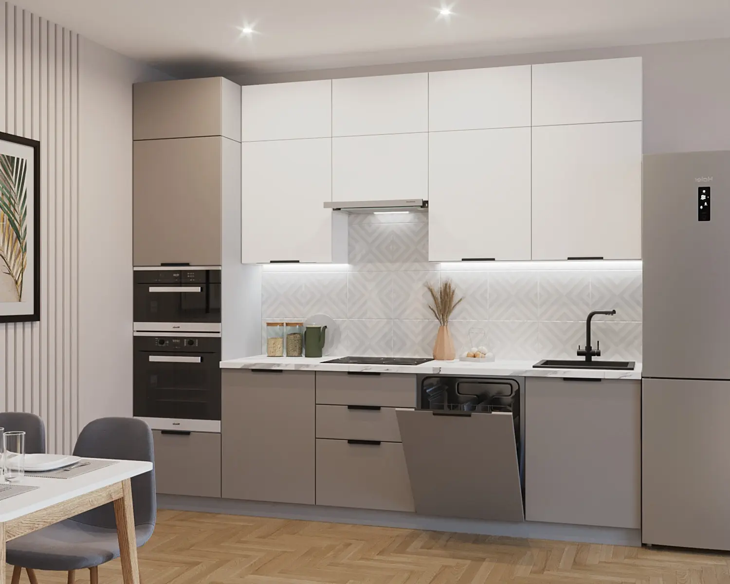 Магазин мебели «100Диванов» предлагает купить Кухонный гарнитур арт. 5 Обсидиан Тальк 3000 мм в Тарко-сале по выгодным ценам от производителя с доставкой.