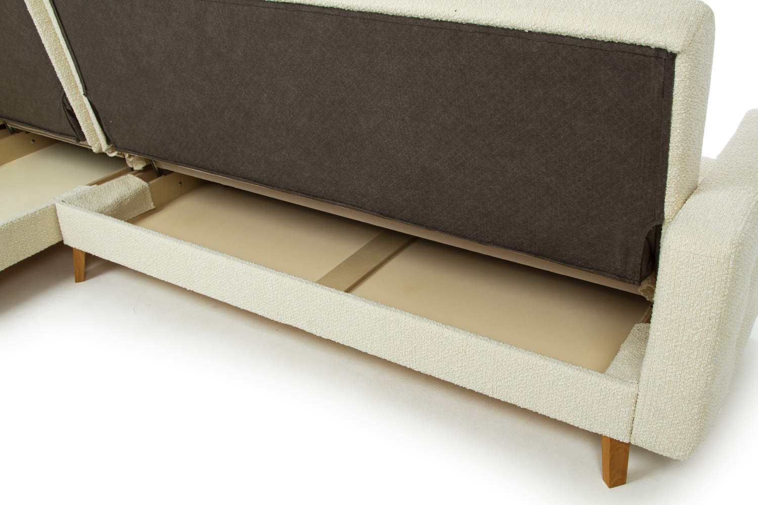 Под посадочным местом дивана расположено просторное место для хранения.