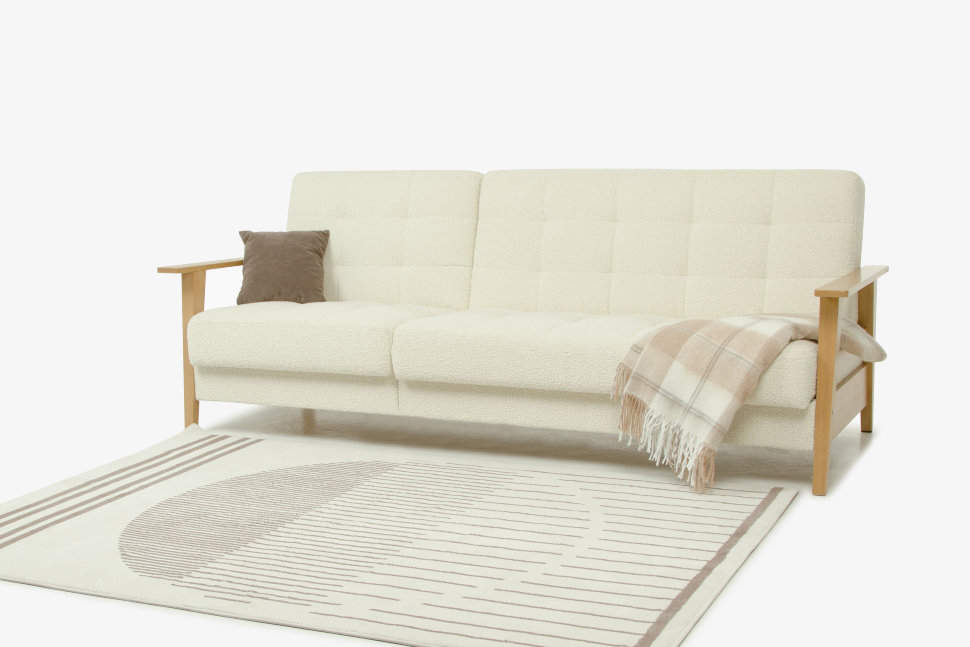 Диван «Скандинавия 2+1 Массив» - классический представитель скандинавского стиля. Его лаконичный дизайн с деревянными подлокотниками из бука, удобными валиками и прямоугольной стежкой удачно дополнит любой интерьер. На таком диване приятно принимать гостей, удобно сидеть и комфортно спать.