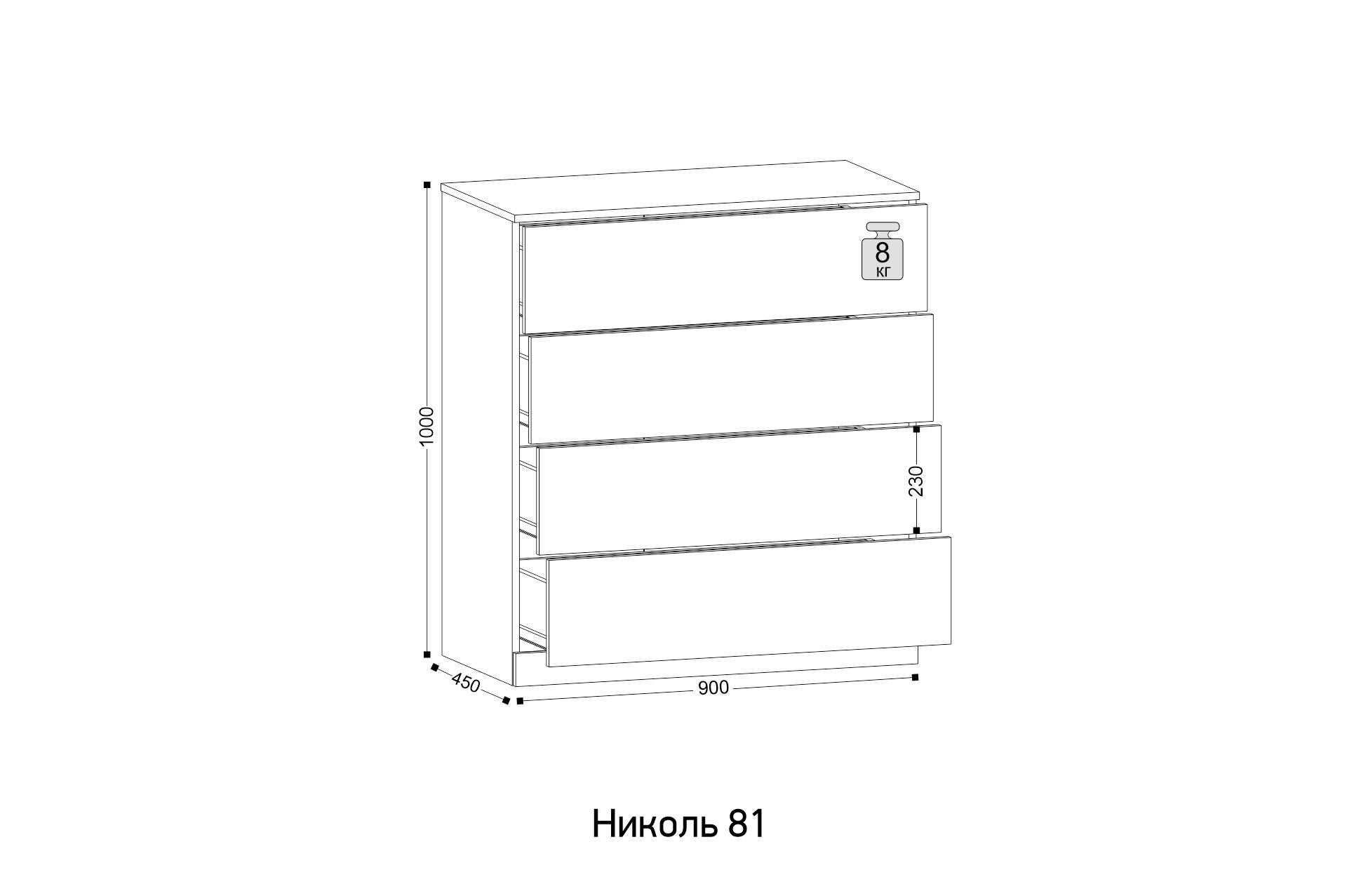 Ширина: 900 мм | Глубина: 450 мм | Высота: 1000 мм