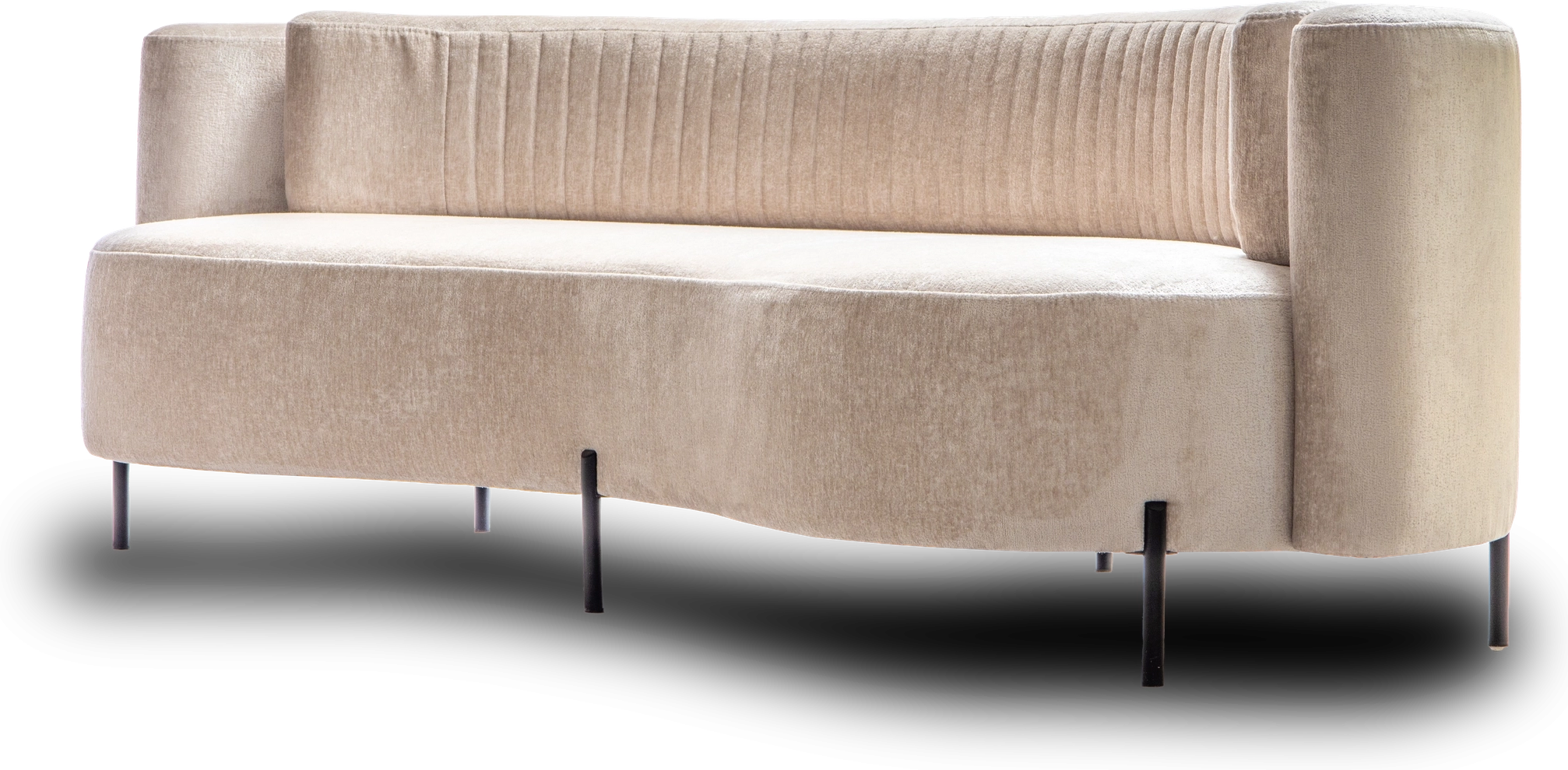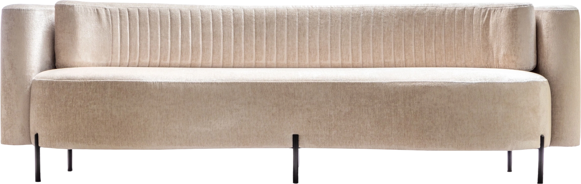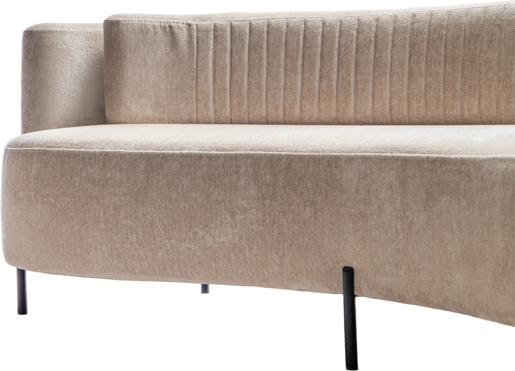Диван Нэнси стоит на высоких черных ножках, которые не только добавляют ему легкости, но и подчеркивают его изысканный дизайн. Красивое лекало обивки создает эффектный акцент, привнося в пространство нотки шарма и индивидуальности.