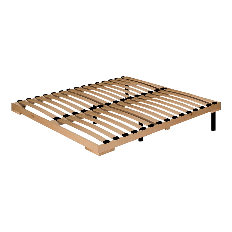 Стационарное основание с гибкими ламелями из фанеры. Прочный и надежный деревянный каркас. Такое основание экологично и выдерживает даже большую нагрузку, чем основание на металлическом каркасе. Сравните: нагрузка на основание в исполнении Дерево - 440 кг с учетом веса матраса, основание в исполнении Металл - 300 кг с учетом веса матраса.