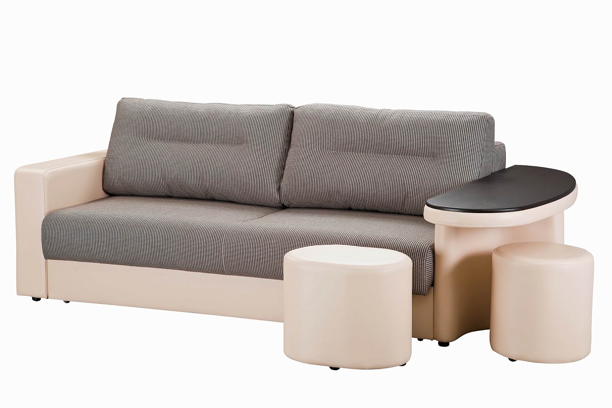 В комплектации диван-кровать и пуфы.