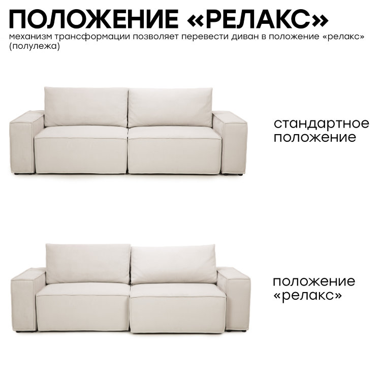 В конструкции прочный металлический каркас HEAVY METAL с повышенной гарантией 67 месяцев. Дополнительное положение RELAX позволяет телу максимально расслабиться, а наклон увеличивает глубину сиденья на 30%. Механизм «еврокнижка» превращает диван в кровать без особых усилий. Ортопедическое наполнение AURORA FORM + идеально подходит для ежедневного сна. Ниши для хранения расположены под посадочным местом.