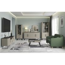 Белый цвет и глянцевый фасад добавят в интерьер гостиной свежести и легкости.