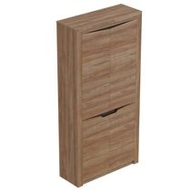Тумба высокая с отделением с дверцей и выдвижным ящиком для хранения мелочей. Тумба открытая с подушкой и полкой для хранения обуви. Мягкая подушка на тумбу из искусственной кожи в цвете домус шоколад. Вешалка состоит из двух частей, на которых расположены по четыре крючка для одежды.