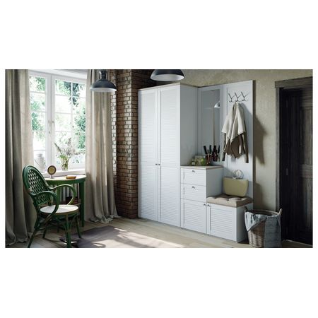 Прихожая – первое помещение, которое «встречает» вас и ваших гостей в квартире, помещение, в котором обычно хранят немало различных вещей, поэтому его надо не только хорошо обустроить, но и еще визуально увеличить и сделать максимально функциональным. Все эти требования помогут удовлетворить модули для прихожей из коллекции «Ривьера». Модульная система «Ривьера» исполнена в теплой «Белой» текстуре, которую аккуратно и ненавязчиво подчеркивает не менее теплая и очень натуральная текстура «Дуб Бонифацио». Мебель из коллекции «Ривьера» впишется в любой интерьер и привнесет в него такую желаемую теплоту и уют, которую мы все хотим видеть и ощущать в нашем доме. Удобство и функциональность — то, чего прежде всего все стремятся добиться в прихожей. В то же время хочется видеть эту часть дома стильной и красивой. Комплект мебели «Ривьера» - идеальное решение в этой ситуации, ведь эта коллекция собрала в себе лучшие качества, которые мы ценим.