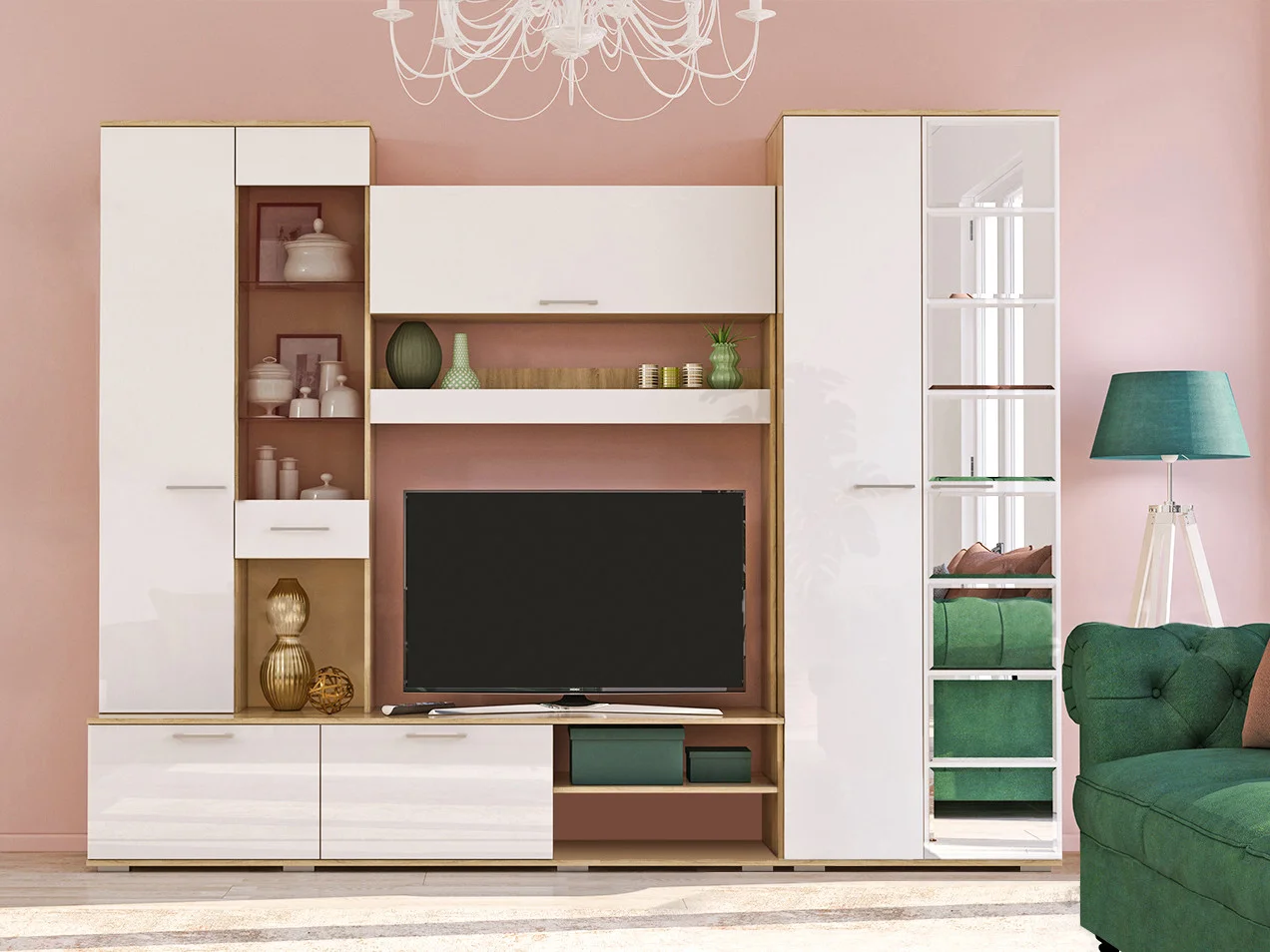 Лаконичное сочетание цветов - белый глянец/дуб сонома.